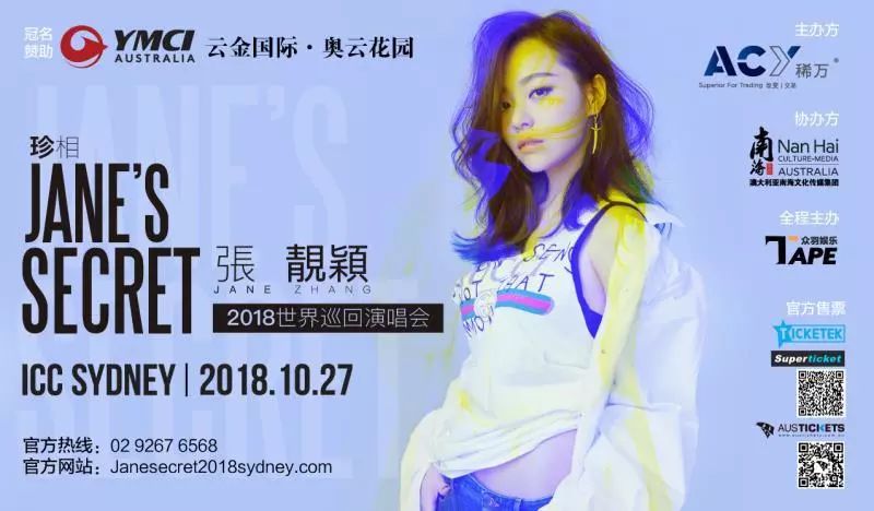 阔别舞台三年的张靓颖将以最本“珍”的方式开启「珍·相」2018年世界巡回演唱会(悉尼站)。作为本次活动主办方,ACY稀万将带广大歌迷重新踏上“音乐之旅”,见证张靓颖史上巅峰演出,寻找真相。这也是张靓颖出道十三年来第二次踏足澳洲舞台,她将给我们带来怎样的惊喜和浪漫,10月27日我们一起拭目以待。