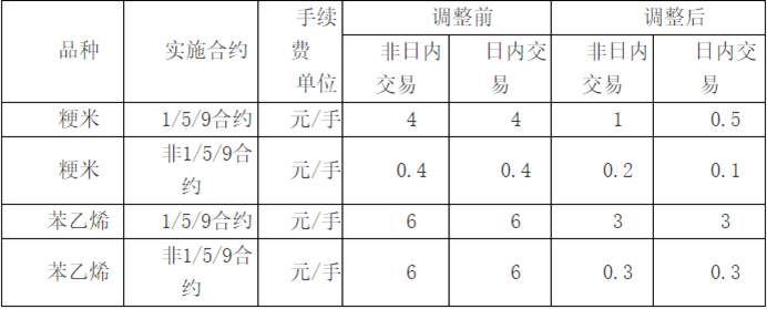 根据上大商所《关于调整粳米和苯乙烯期货手续费标准的通知》(大商所发〔2020〕249号),自2020年7月1日交易时(即6月30日夜盘交易小节时)起,将对粳米和苯乙烯期货的手续费标准进行调整,具体如下表所示。